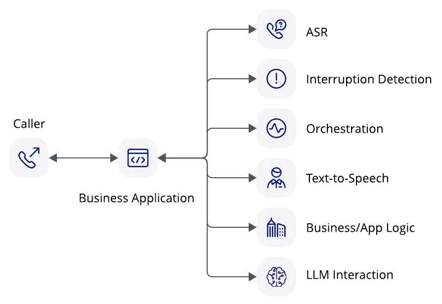 Historically, voice applications have been more challenging to build than messaging (SMS, WhatsApp, Chat) applications because voice is a synchronous channel that cannot be easily broken into an event based architecture. For voice AI applications, we builders need to convert streaming voice into text, stream that text to an AI application, stream back the response, and finally convert the response back to voice all while handling session state, interruptions, speaker detection, noise cancellation, and minimizing latency. This is no trivial task!