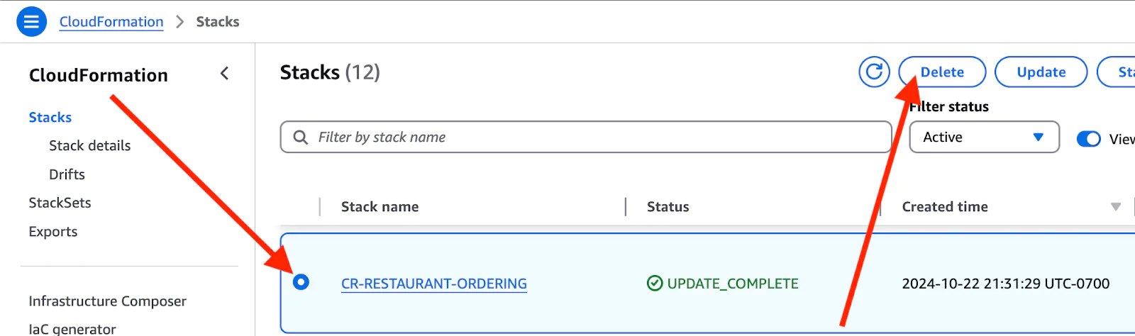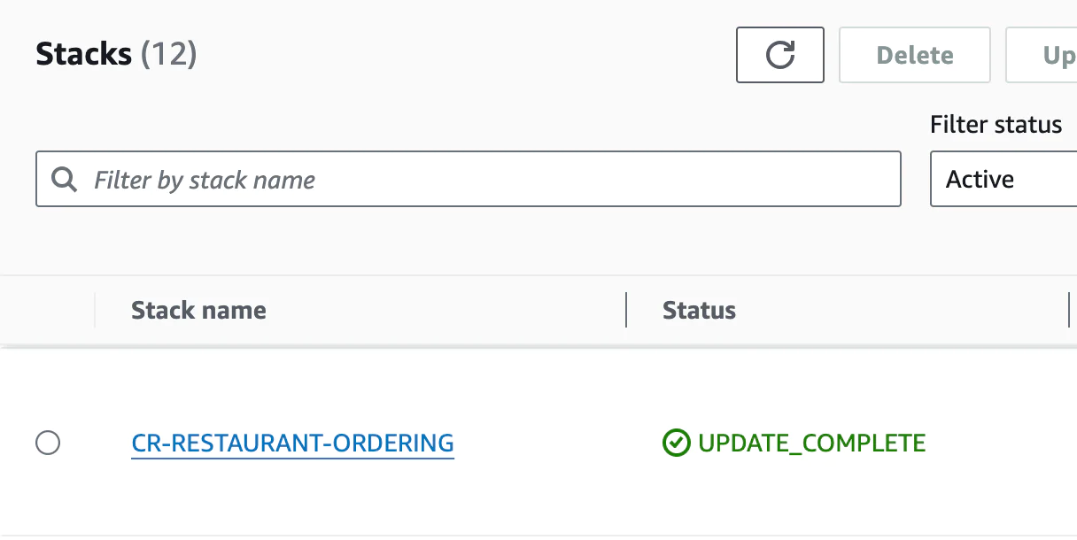 You should see a new stack called CR-RESTAURANT-ORDERING: