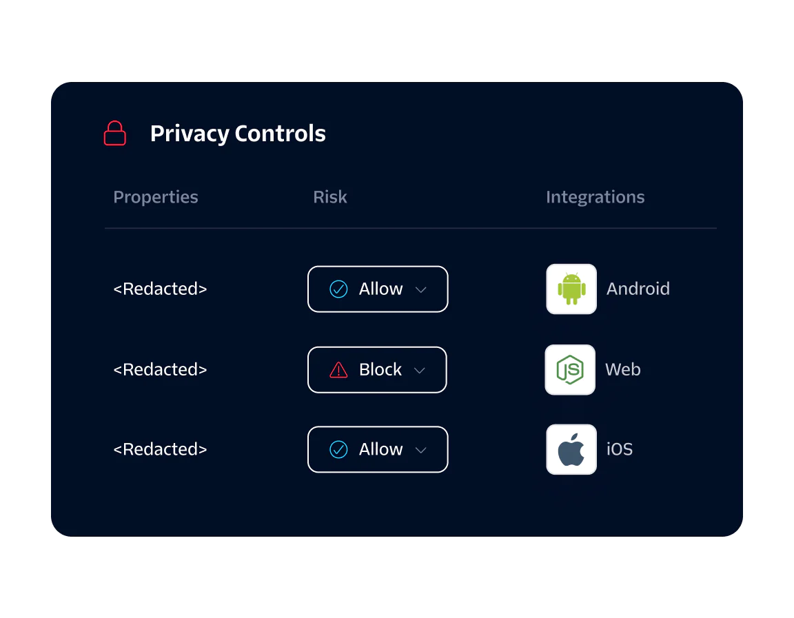 Set automatic rules to proactively block data that doesn’t adhere to your company’s tracking plan and manage user deletion or suppression requests at scale.