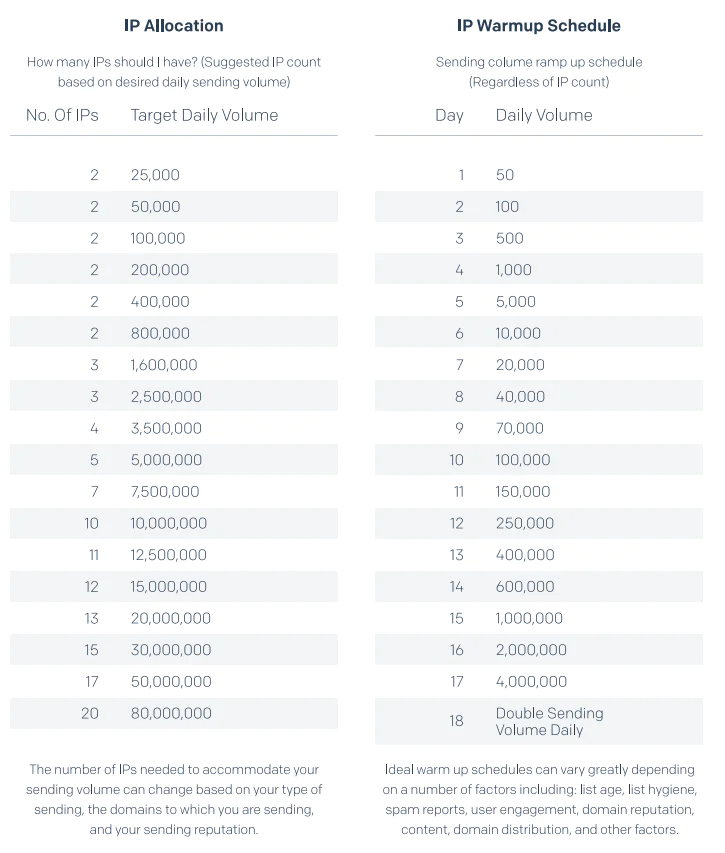 Our How to Warm Up an IP Guide includes new tactics and strategies for warming up your new IP addresses and also has sample schedules for you to follow.