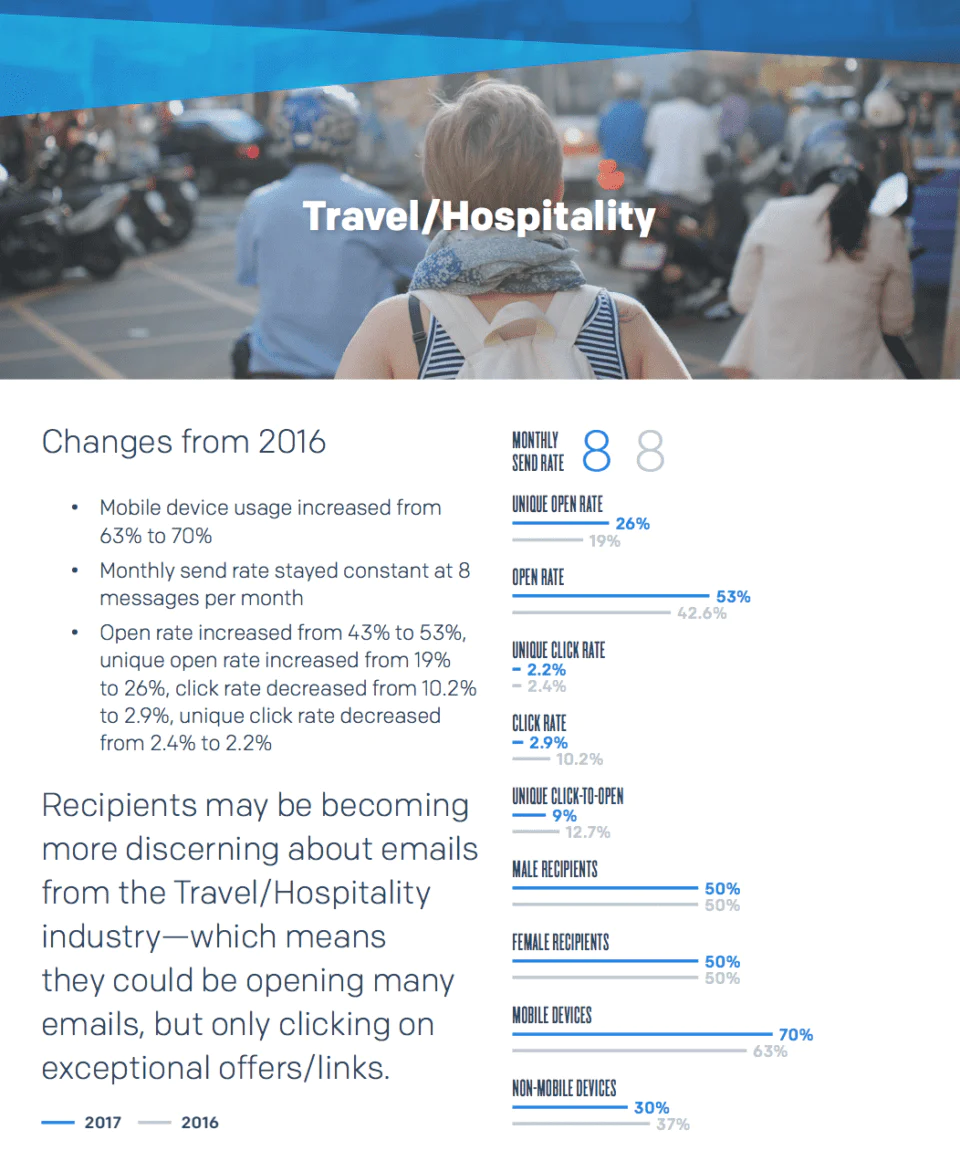 We help thousands of companies deliver their email to billions of recipients. If your company operates in any part of the travel and hospitality industry, you need to make sure your email program is as successful as possible. One of the ways you can check the health of your email program is by comparing your engagement metrics to the industry averages of other travel and hospitality senders.