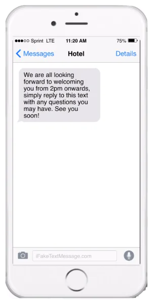 Effective communication with your guests starts prior to their arrival at their destination. You can use SMS to send your guests personalized welcome messages and check-in reminders to prepare them for their reservation with your company. Be sure to communicate the check-in time, hotel address, and other important details that your guests may need to know before they arrive at their destination.