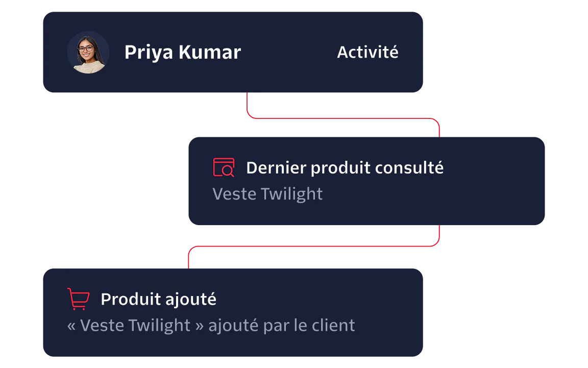 Exploitez en temps réel vos données clients first-party afin de ne manquer aucune étape du parcours unique de chaque acheteur. Activez les données de votre Data Warehouse dans n'importe quel outil pour créer des expériences personnalisées.