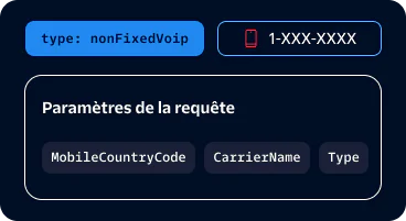 Sortie de la version bêta, cette solution est prête à améliorer vos flux d'authentification. Line Type Intelligence améliore la délivrabilité et minimise la fraude en identifiant avec précision le type de numéro de téléphone : mobile, fixe, VoIP fixe, VoIP non fixe, gratuit, etc.