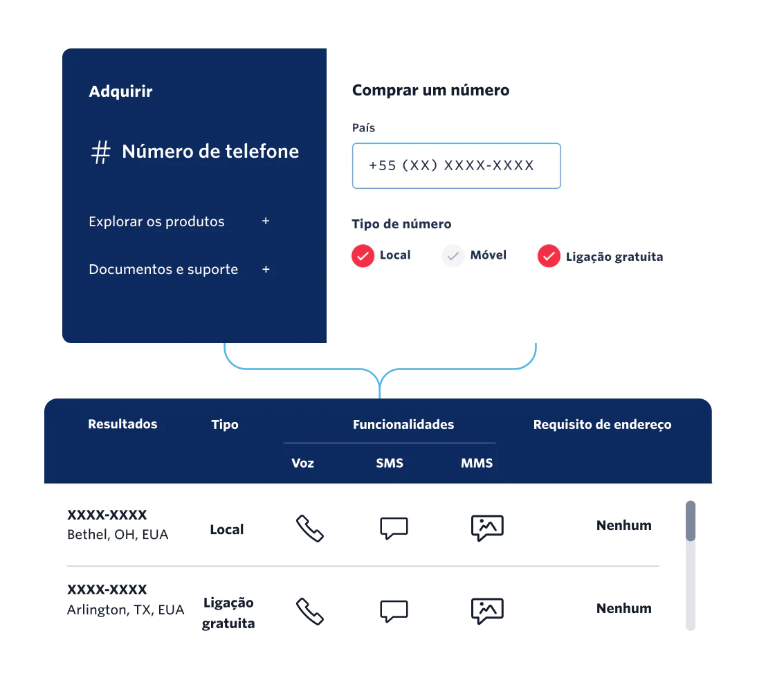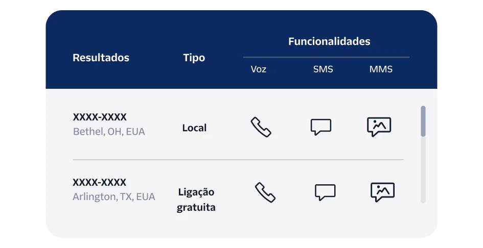 Cada tipo de número de telefone tem recursos diferentes para engajar os clientes da maneira mais eficaz.