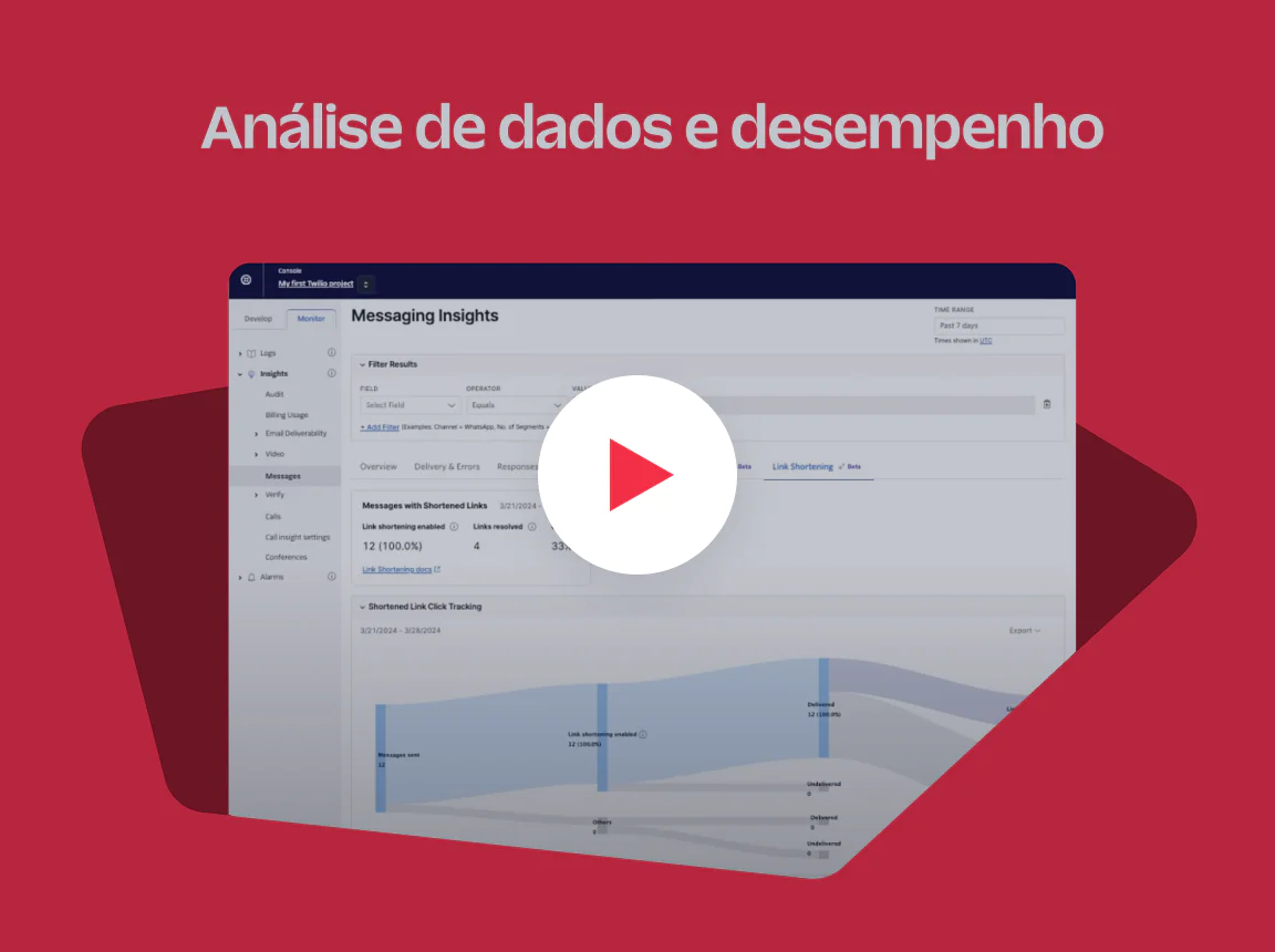 * Em uma avaliação de mais de 63 milhões de mensagens enviadas pela Twilio com hiperlinks encurtados, as mensagens com hiperlinks encurtados por Link Shorteners de terceiros foram filtradas a 1,96% ou 28x a taxa da Twilio, que foi filtrada a uma taxa de 0,07%
